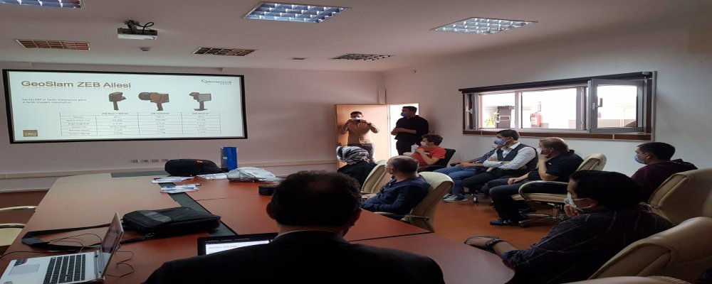 TKGM Harita Dairesi Başkanlığında Kadastro ve Harita Daire Başkanlarımıza, ilgili Şube Müdürü ve Mühendis arkadaşlarımıza Oran Sitesindeki kampüsünde bina içi ve dışında Türkiye Temsilcisi olduğumuz GEOSLAM Marka LİDAR ile yaptığımız uygulamalı eğitime ve tanıtıma katıldıkları için teşekkür ederiz. Lidar ölçümlerinin Nikon Total Station ve Spectra GNSS ile yapılan kontrol ölçümleri sonucu 1-3 cm hassasiyetle sonuçlanmış olması, 9 il de bitirdiğimiz Hizmet şeklindeki Lidar ölçümleri ve Geoslam Lidar satın alan 4 ayrı Harita Müteahhit firmanın bizleri seçmesi tesadüf olmamıştır.