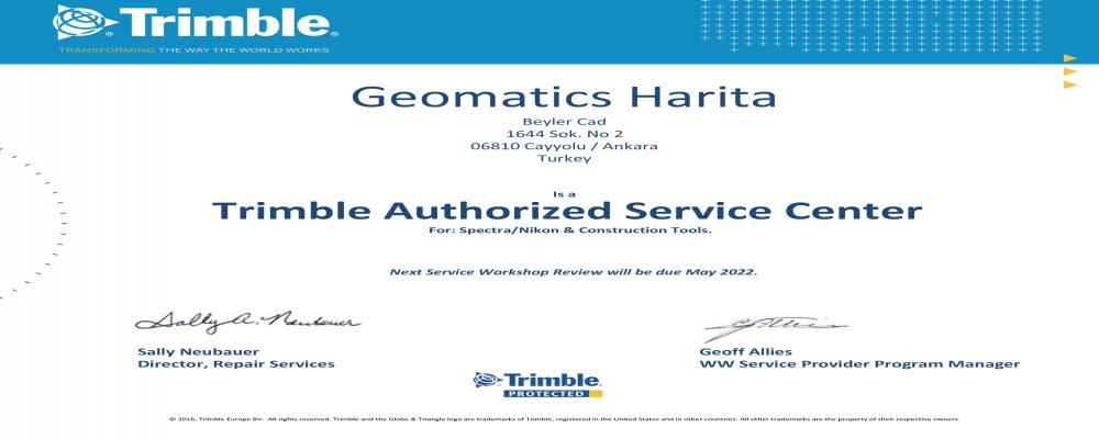 Trimble Servis Merkezi olarak Sertifikamızı yeniledik ve sizlere Spectra/Nikon ve diğer cihazları için servis vereye devam ediyoruz..