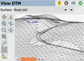 Survey Pro kullanılarak hacim hesabı için arazide toplanan veriler ve sayısal arazi modeli yüzeyi de aplike edilebilir. Arazideyken, nerede ek noktalara ihtiyaç olduğunun görülebilmesi için, aplike edilmiş sayısal arazi modeli sonuçları gösterilir. Survey Pro ekranında sayısal arazi modeli yüzeyinin herhangi bir konumu için dolgu-yarma bilgileri eş zamanlı olarak gösterilmektedir.